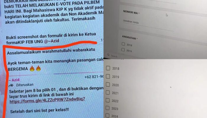 Gorontalo — Proses Pemilihan Badan Eksekutif Mahasiswa (Pilbem) Universitas Negeri Gorontalo (UNG) tahun 2025 menuai sorotan tajam. Alih-alih menjadi pesta demokrasi mahasiswa yang murni, jalannya Pilbem justru diwarnai dugaan pelanggaran etika pemilu serta intervensi terhadap kebebasan memilih.